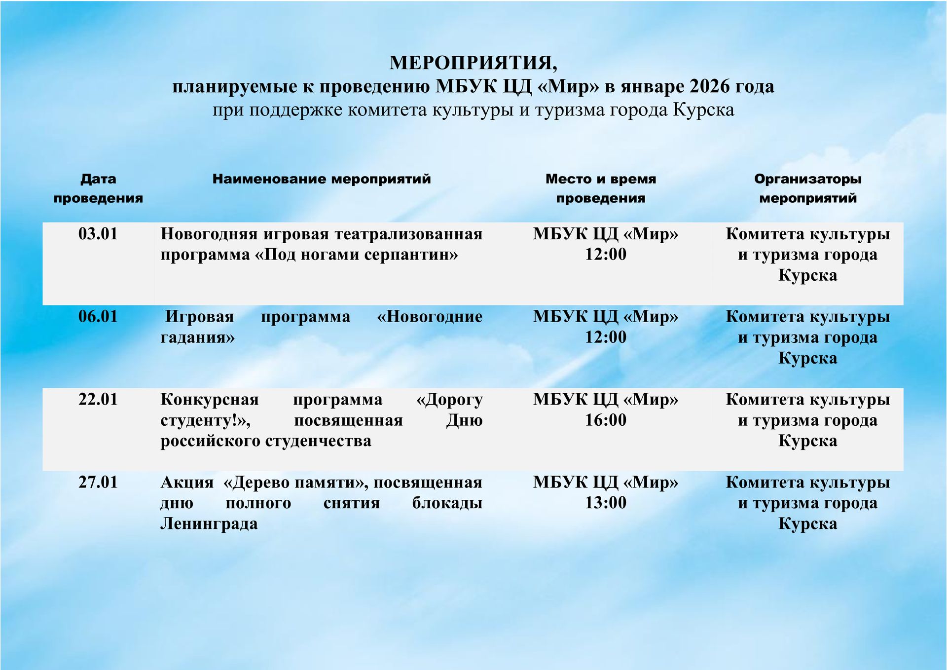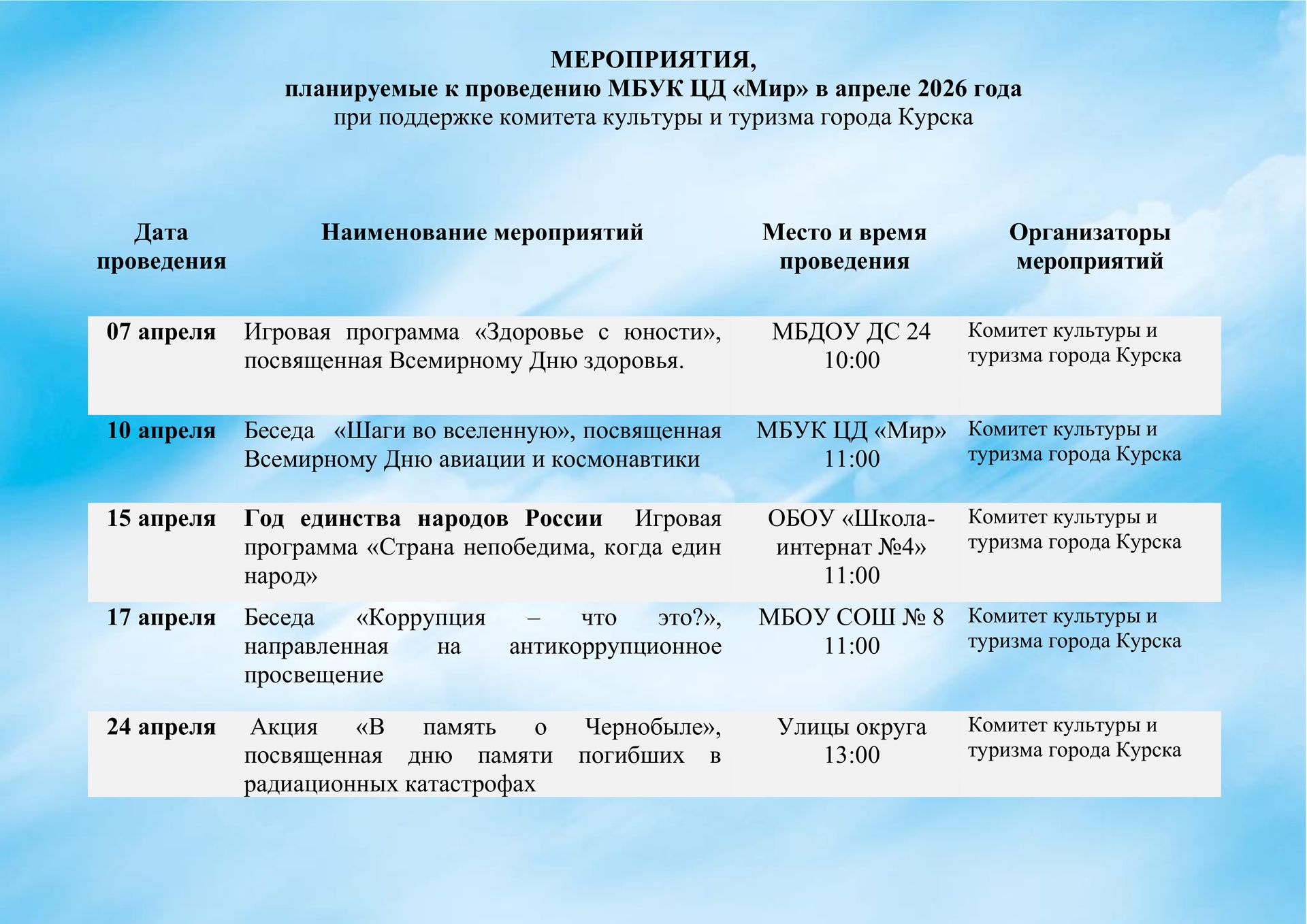Планируемые мероприятия
